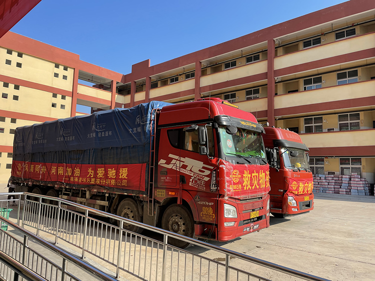 为了尽快将支援物资送到受灾同胞手中,星球石墨党支部及工会组织党员、工会骨干及部分职工连夜购置物资并装车, 7月25日凌晨三点,星球石墨支援物资全部装车到位,整装待发,其中有位支援队成员半夜装完赈灾物资回家路上发生了一起小意外,头上缝了好多针,但早晨六点整,他还准时出现在集合点,坚持随其他成员一起抢在台风“烟花”登陆之前从公司出发,他们带着满满两大车的应急物资,带着全体星球人的关切与问候,紧急奔赴河南。